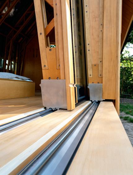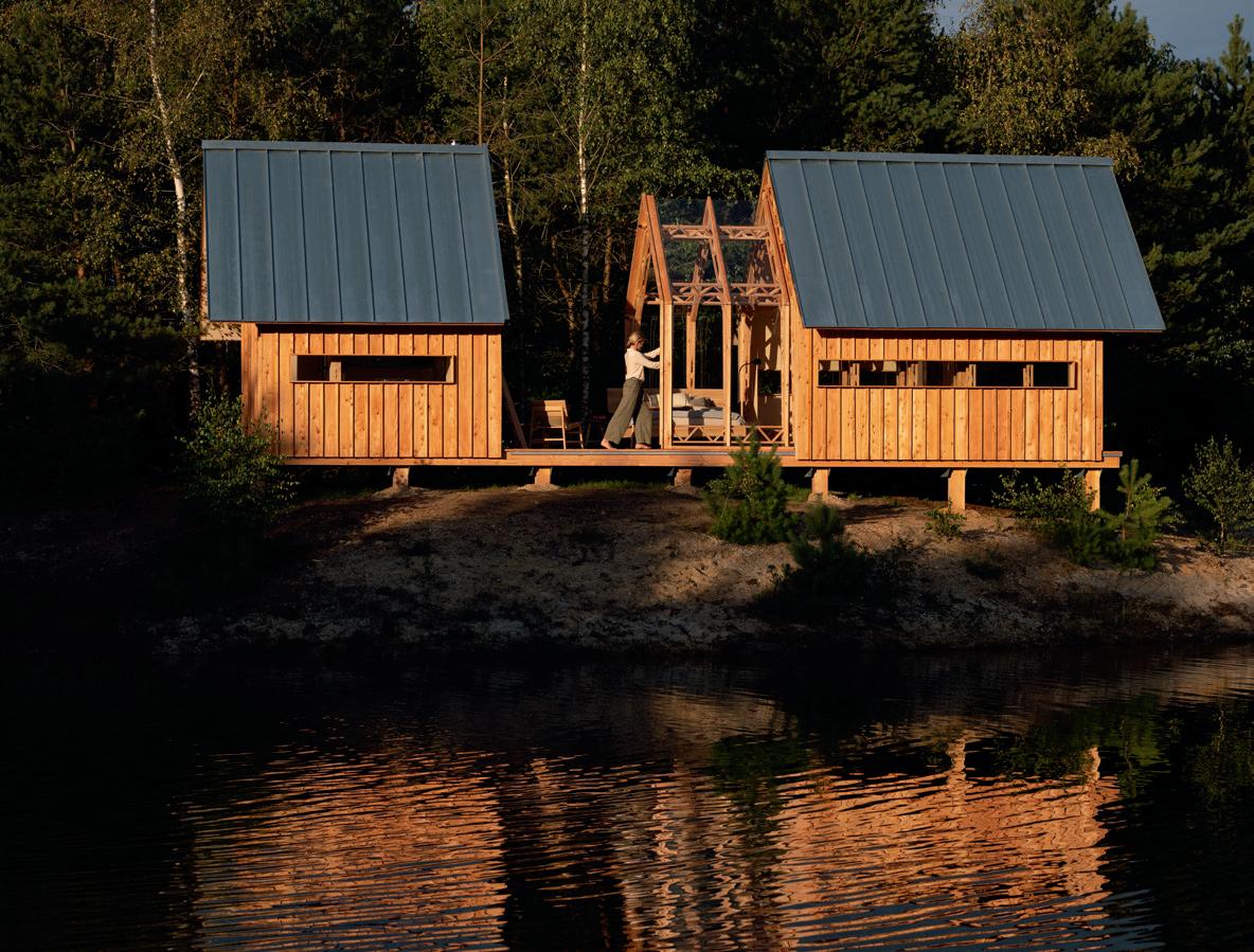 While the exterior of the shells is clad in Accoya wood, the interior walls are made from birch plywood.