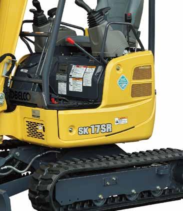 Crowding Force (ISO 7451) lbf (kN) Combined flow, double action 2,417 ( 16,669 ) 8.1 ( 30.8 ) 4.6 ( 17.5 ) S pe ci f ic at ions ROPS / FOPS canopy ・ Rubber track ・ N&B piping Travel alarm ・ 2-way pattern changer STANDARD EQUIPMENT SK17SR SK17SR-6E 3,681 (1,610) 1.41 (0.04) 3'1" (950) 2,833 (12.6) 3,417 (15.2) 1,821 (8.1) 1,911 (8.5) GENERAL MODEL Model Type Power Output SAE NET hp (kW) / rpm (Without Fan) hp (kW) / rpm Max. Torque SAE NET lbf (N m) / rpm (Without Fan) lbf (N m) / rpm Displacement cu in (L) Fuel Tank U.S. gal (L) YANMAR 3TNV74F-SPBV Tier4 water-cooled 4-cycle 3-cylinder 14.5 (10.8 ) / 2,400 15.0 (11.2 ) / 2,400 36.3 (49.2 ) / 1,800 37.0 (50.2 ) / 1,800 61.0 (1.0 ) 5.2 (20 ) ENGINE Pump Max. Discharge Flow U.S. gal (L) / min Relief Valve Setting psi (MPa) Hydraulic Oil Tank (system) U.S. gal (L) Two variable displacement pumps + two gear pump"(one for pilot pump) 2×4.6 (17.6), 1×3.5 (13.2), 1×2.0 (7.9) 5,975, 2,422, 420 (2 x 20.6, 16.7, 2.9) 4.4 (16.5) (6.9 (26)) Orbit motor Hydraulic lock type 2.6 (4.2) / 1.3 (2.1) 4,114 (18.3) HYDRAULIC SYSTEM Shoe Width in (mm) Ground Pressure psi (kPa) 9 (230) 4.2 (29)