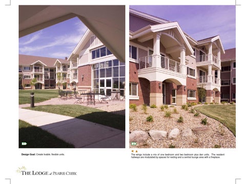 The wings include a mix of one bedroom and two bedroom plus den units. The resident hallways are modulated by spaces for resting and a central lounge area with a fireplace.