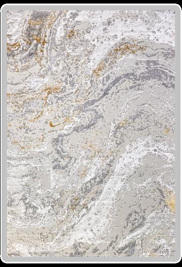 Description/Descripcion Inspirada en las montañas nevadas y el reflejo del sol sobre la escarcha, esta alfombra combina tonos fríos con detalles dorados que aportan elegancia. Su patrón abstracto le da dinamismo, perfecta para ambientes modernos con carácter.