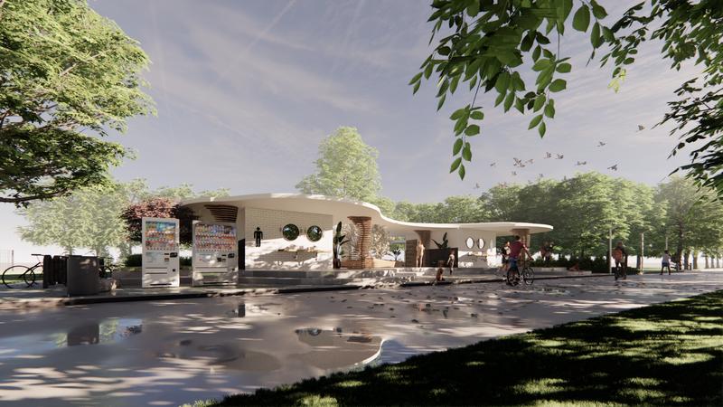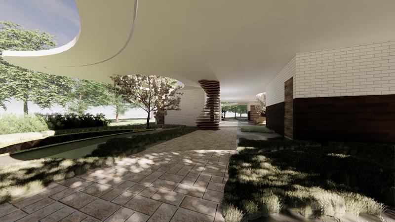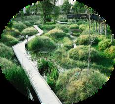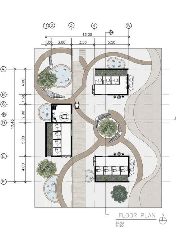 เสนทางลดเลาะธรรมชาต การใชเสนโคงของเนนดนและเสน โคงของทางนา การใชเสนซกแซก การใชเสนทางลดเลาะธรรมชาตของสวน มาปรบใชกบเสนโคงของเนนดน และเสนโคงของการไหลของนา และมการใชเสนทางซกแซกในสวนมาปรบ เปนพนทพกคอย นาเสนตรงมาใชรวมกบตนไม ระนาบทางเดนถกปรบเปลยนเสมอนการไหลของนา สวนบอหลมเปรยบ เสมอนเนนดนทนาไหลผาน