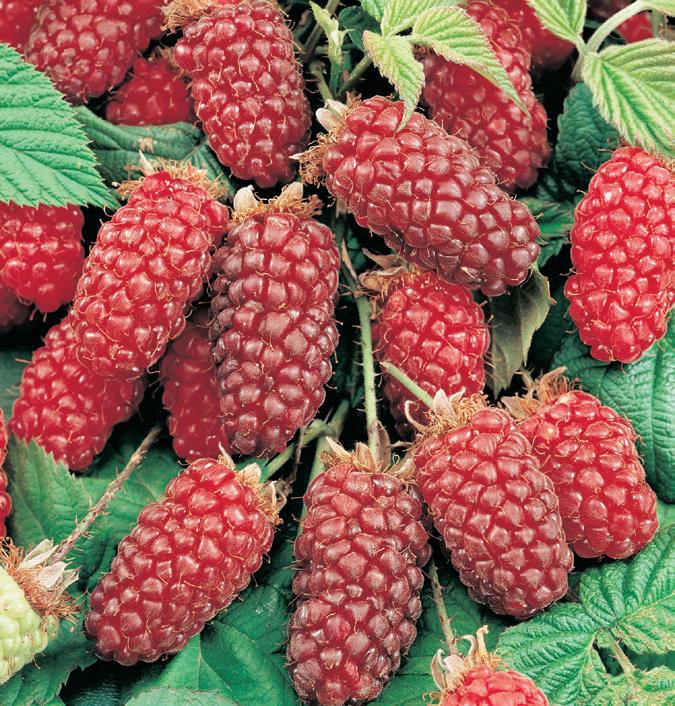 4. KARHUNVADELMA ’THORNLESS’ (Rubus fruticosus ’Thornless’) Erittäin runsassatoinen, köynnöstävä karhunvadelmalajike, joka kasvaa n. 2 metriseksi. Itsepölytteinen lajike. Menestyy parhaiten tuettuna säleikköä tai muuta tukea vasten. Ruukkutaimi 9 cm. ` kesäkuu 2 2 m m w 10-1786 Karhunvadelma ’Thornless’ 1 kpl 9,95 € (Rubus ’Tayberry’) Teivadelma on karhunvadelman ja tarhavadelman risteymä. Pitkulaiset ja maukkaat marjat kasvaa saman kasvukauden versoihin. Menestyy parhaiten kasvihuoneessa tai lämpöisellä kasvupaikalla. Ruukkutaimi 9 cm. ` kesäkuu 2 2-3 m m w 10-1784 Teivadelma 1 kpl 9,95 €