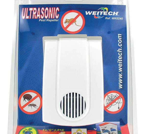 Hiirien ja hyönteisten karkotin, joka pitää ultraäänen avulla hiiret ja pikkuötökät poissa. Toiminta-alue 45 m². Paristokäyttöinen. Huom! Asenna elo-syyskuussa -> ehkäisee ennakkoon paremmin. 03-014 Hiirien ja hyönteisten karkotin 29,95 € (ovh. 39,00)