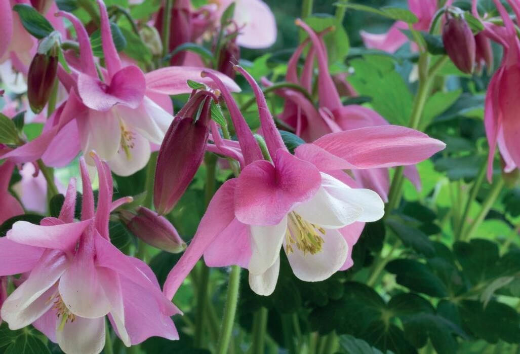 6. JALOAKILEIJA ’ROSE & WHITE’ (Aquilegia caerulea ’Rose & White’ ) Vanhanajan puutarhakasvi! Upea, vaaleanpuna-valkoinen lajike. Viihtyy parhaiten runsasmultaisessa, salaojitetussa maassa. Ruukkutaimi 9 cm. ` kesä-heinä