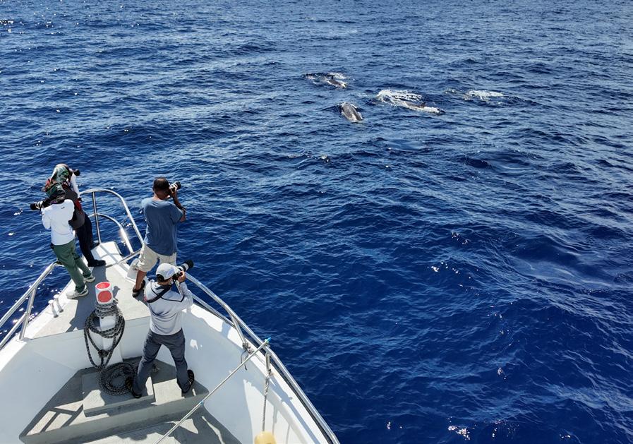 我們與朗氏相遇的那天,船上夥伴 難掩激動,仍不忘用相機、水下攝 影機等載具,盡可能記錄那難得的 身影。