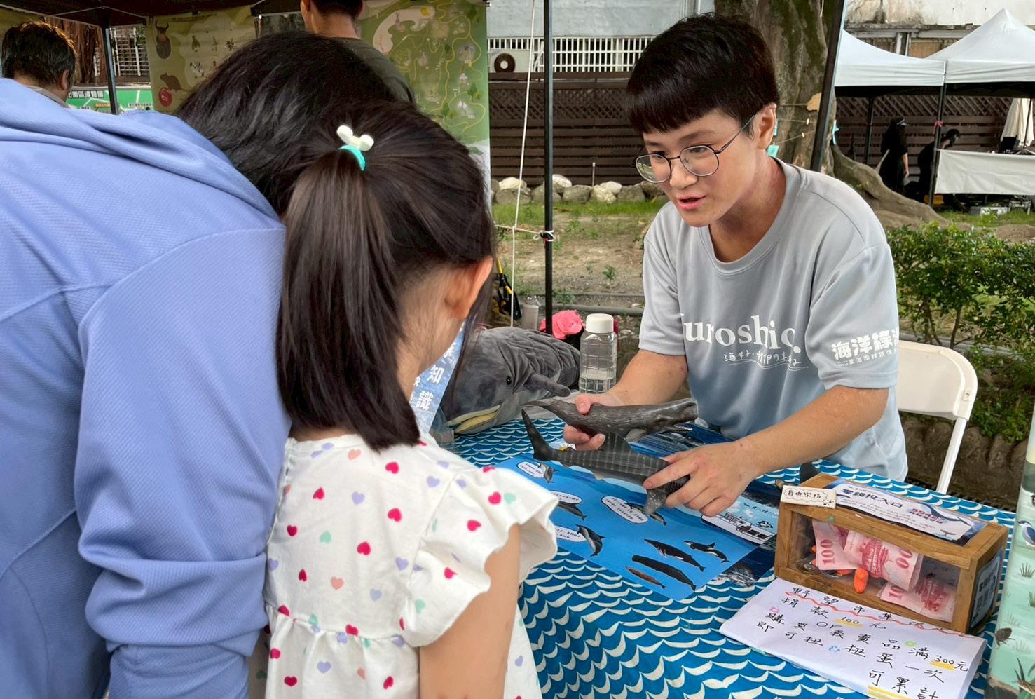 分享。有別於課堂講座及海上賞鯨解說,在市集中只 能短暫的交流互動,但我們仍期望勾起一點點來到攤 位上的你,對鯨豚的好奇。