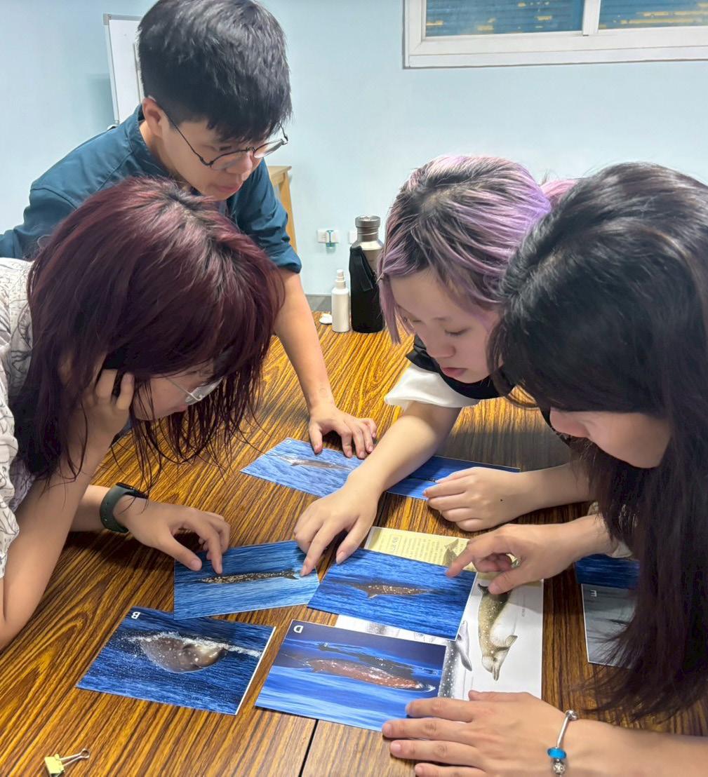 喙鯨探險隊工作坊,學員們正認真地練習分辨鵝嘴喙鯨個體。