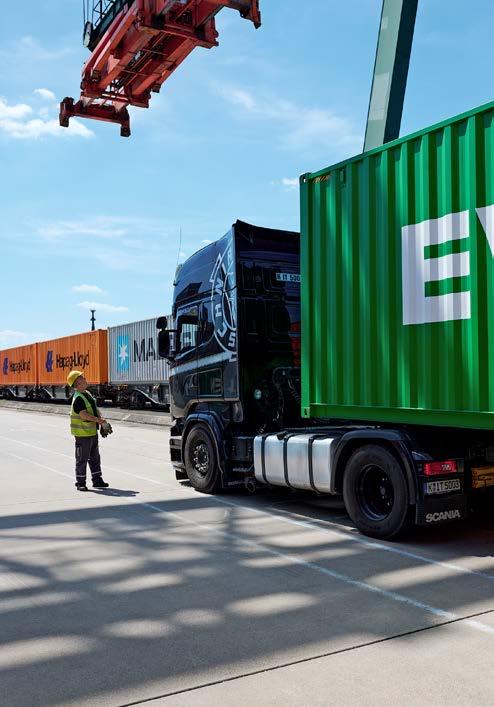Als trimodaler Knotenpunkt verbindet der Niehler Hafen Binnenschiffe mit Lkw für den regionalen Zielverkehr und mit Güterzügen. Diese starten täglich zu unterschiedlichen Zielen in Europa. Der Bahntransport spart dabei rund 80 Prozent CO₂ im Vergleich zum Lkw –ein starkes Argument für die Schiene.