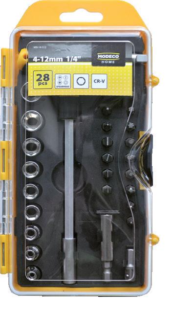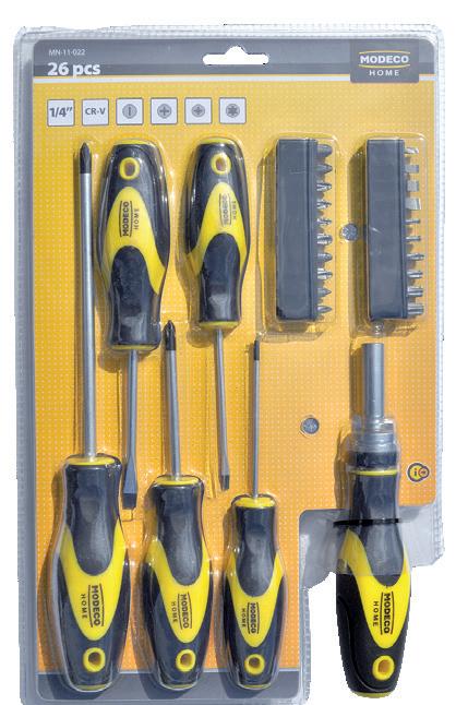 A HOME TOOLS termékcsalád olyan kéziszerszámokat, mérőeszközöket, szerelőkulcsokat és építőipari szerszámokat ölel fel, melyek mindenki otthonában előfordulhatnak. A katalógus az általános kéziszerszámok széles választékával indul, amely többek között csavarhúzókból, fogókból és kalapácsokból áll. Teljes termékkínálatunk ezenfelül tartalmaz késeket, fűrészeket, simítókat, mérőszalagokat, vízmértékeket, elektromos szerszámgép tartozékokat, és még számos egyéb szerszámot, melyek mindegyike megtalálható az otthoni szerszámos ládákban. Minden termék többfajta méretben elérhető, és megvásárolhatók egyenként vagy készletben is, hogy a felhasználók igényeit teljes mértékben kiszolgálhassuk.