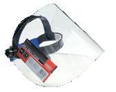 polikarbonát - könnyű, karcálló, mechanikai védelem, UV védelem fejmérethez állítható csavarokkal állítható az archoz való közelsége repülő szemcsék, szikrák elleni védelem