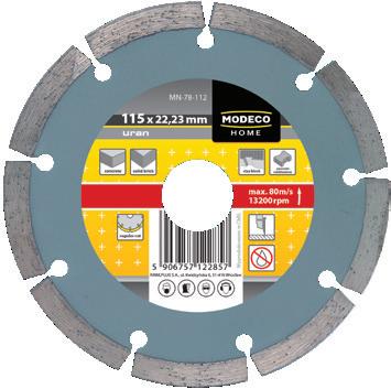 A gyémánt szegmensek kialakítása lehetővé teszi tégla, kerámia blokkok és egyéb könnyű építőanyagok vágását