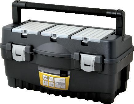 nagy méret nehéz szerszámok szállítására kihúzható fogantyú polipropilén - ellenálló a vízzel és a legtöbb vegyszerrel szemben 3 nagy méretű rendszerező fiók kivehető szerszámtálca lelakatolható