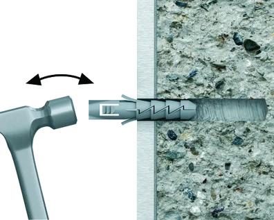 Gipszkarton falakhoz történő felszereléshez használja a barna dübeleket, tömör falakhoz pedig a szürke dübeleket. A csavarok meghúzásakor a kerámiát nylon perselyek védik. A dübel kétirányú tágulási mechanizmussal rendelkezik, amely tömör alapanyagokban erős rögzítést biztosít.