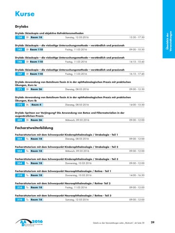 Drylab: Spritzen zur Verjüngung? Die Anwendung von Botox und Fillermaterialien in der augenärztlichen Praxis 309 Dl Raum 26