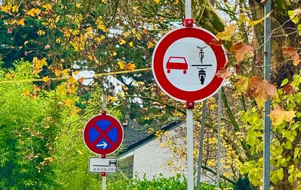 Fast jeder aus Köln-Weiß hat die Baustelle auf der Höhe vom Restaurant Delphi passiert. Der neue Kreisverkehr. Hier ist ein Verkehrsschild aufgefallen, was man nur sehr selten sieht. Hier darf ein Autofahrer kein Fahrrad oder Roller überholen. Tatsächlich ist es auch so gut wie nicht möglich. Das neue Verkehrzeichen gibt es erst seit 2020. Foto: Ralf Perey