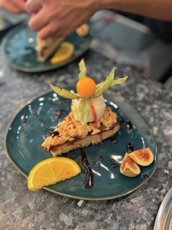 Unser Angebot: Jede Art von Genuss für Sie. Leckere Speisen für Leib und Seele, mit Fantasie kreiert, mit Liebe gekocht und mit Aufmerksamkeit serviert. Ausgewählte Weine und Spirituosen außer Haus und am Tisch sind die harmonischen Begleiter eines gelungenen Essens mit Freunden