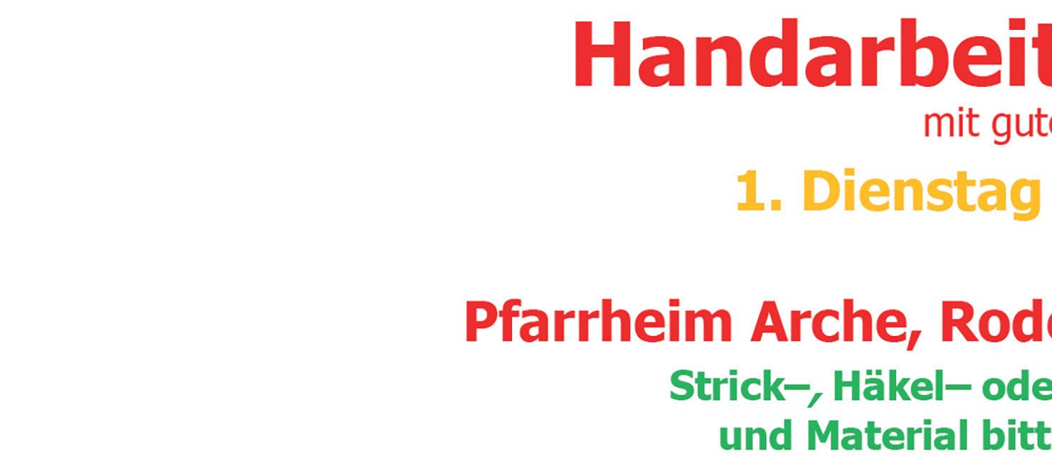 Freies kreatives HandarbeitenDienstags von 15.00 – 17.00 Uhr im BürgerTreff X Eygelshovener Str. 33, 50999 Köln für alle am Nähen, Stricken Häkeln oder Basteln Interessierten in Kooperation mit dem Familienzentrum Rheinbogen. in kommunikativer Runde voneinander lernen, Tipps, Hilfen und Ideen austauschen Materialien stehen zur Verfügung Bei Interesse bitten wir um kurze Anmeldung.