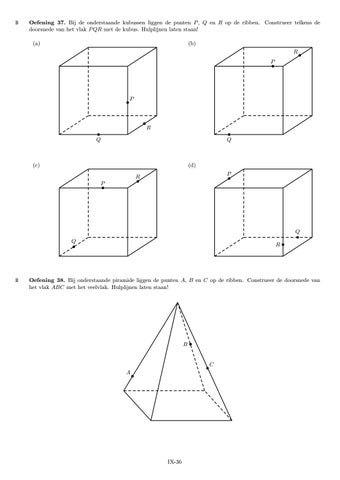 Oefening 37. Bij de onderstaande kubussen liggen de punten P , Q en R op de ribben. Construeer telkens de doorsnede van het vlak P QR met de kubus. Hulplijnen laten staan!