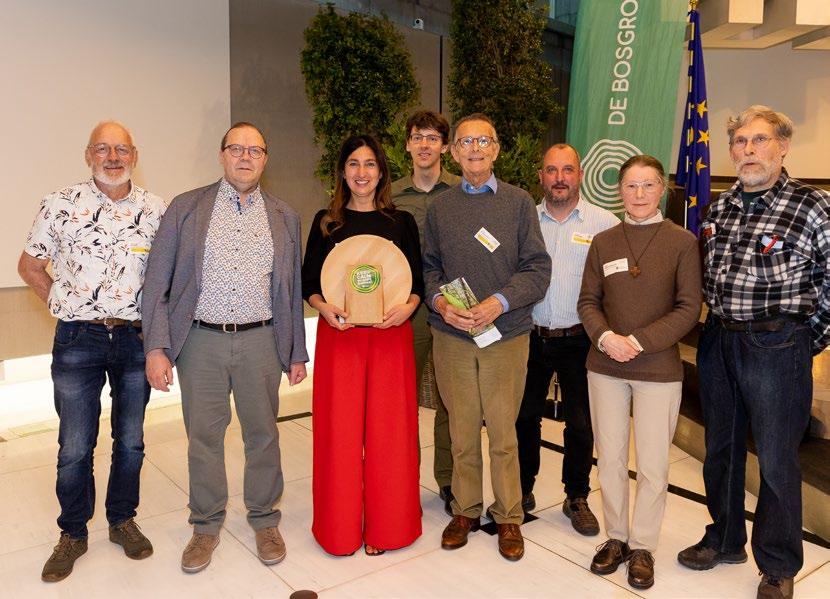 De Bosgroep Houtland was erg actief bij de organisatie van het symposium ’25 jaar Vlaamse Bosgroepen’ in Brussel waarover u in dit Boomblad meer kon lezen. Chris Couwelier uit Zedelgem, Jan Goris uit Brugge en Zr. MarieDominique Vande Plassche uit Torhout stonden in de kijker als respectievelijk keynote-sprekers en lid van het debatpanel. In de geprojecteerde partnervideo’s ver tegenwoordigde Hans Compernolle (Brugge) de grote groep Vlaamse bosgroepvrijwilligers en Kris D’hondt (Jabbeke) Natuurpunt. Onze voorzitter Albert vond dat zo veel inzet wel een foto met minister Demir ver diende en zo geschiedde. Het leverde