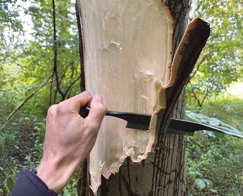 Op de foto’s kan je twee veelgebruikte methodes zien: ringen met het trekmes (links) en ringen met de bijl/hamer (rechts).