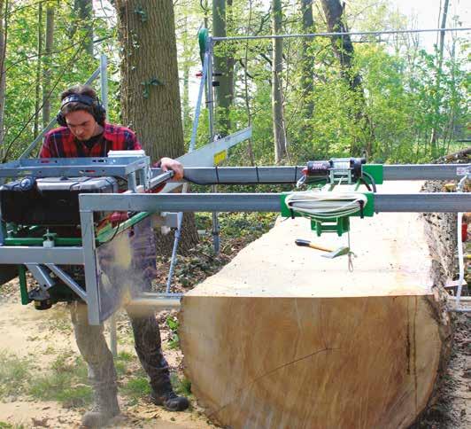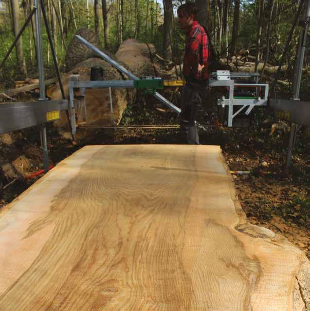 Tijdens een van de vele stormen in februari waaide in het kasteelpark van Zwalm een reuzenboom uit. De eigenaar is lid van De Bosgroepen en samen hebben we ervoor gezorgd dat het verlies van de 200-jarige es met een omtrek van 430 cm werd omgebogen tot een mooi verhaal. Peter Lievens is gespecialiseerd in het ter plaatse verwerken van dergelijke ‘buitenbeentjes’. Hij bouwde een mobiele boomzaag rond de stamstukken en verzaagde deze ter plaatse in planken van ruim 10 cm dik en 4 à 5 meter lang. Gemiddeld weegt zo’n plank maar liefst 500 kg. De planken zullen eerst een paar maanden in open lucht gedroogd worden en vervolgens volledig gedroogd in een droogoven. Daarna worden ze opnieuw vlak gefreesd om zo de vervormingen die tijdens het droogproces ontstaan weg te werken. Peter, die ook een gepassioneerde boseigenaar is met een bos in het Brugse, zal deze planken verwerken tot unieke tafelbladen. Een mooi voorbeeld van lokale verwerking van houtstammen tot een hoogwaardig eindproduct.