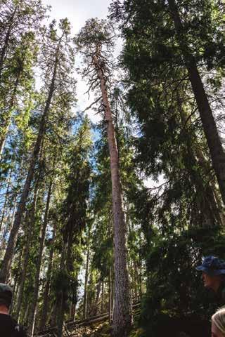 Het Zweedse Agentschap voor Bos (Skogsstyrelsen) gaf ons een inkijk in het Zweedse bosbeheer en hoe ze omgaan met klimaatverandering. Dit is de verdeling van het Zweeds staand volume per boomsoort: 40% fijnspar, 40% grove den, 12% berk en 8% andere loofhoutsoorten. Met de klimaatverande-