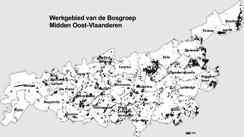 De Bosgroep Midden Oost-Vlaanderen is actief in de volgende 26 gemeenten van de provincie Oost-Vlaanderen:Aalst,Berlare,Buggenhout,De Pinte, Deinze,Dendermonde,Destelbergen,Erpe-Mere,Gavere,Gent,Hamme, Kruibeke,Laarne,Lebbeke,Lede,Melle,Merelbeke,Nazareth,Oosterzele,SintLievens-Houtem,Sint-Martens-Latem,Temse,Wetteren,Wichelen,Zele en Zulte.