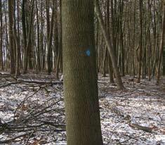 Toekomstbomen mogen bij exploitatie zeker niet beschadigd worden en krijgen daarom blauwe verfstippen.