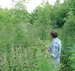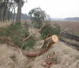 Dus zorg ervoor dat uw jonge aanplant zo snel mogelijk boven deze kritische hoogte uit komt. Helaas hebben ze hiervoor volle zon nodig, dit betekent dat het vrijstellen van ruigte de eerste jaren noodzakelijk is. De meeste lichtboomsoorten kunnen de eerste 2 jaren toch wel een beetje schaduw verdragen, maar hun eindscheut moet altijd boven de ruigte uit steken in de volle zon. De rest van de ruigte mag blijven. U zult minder last hebben van bramen als u spontaan opschietende lichtboomsoorten zoals wilg of berk een aantal jaren meeneemt en dan niet al te laag afmaait of afzaagt. Ze schieten dan nog min of meer half uit maar gaan dan toch kapot als de aangeplante lichtboomsoorten wat meer schaduw beginnen te geven. Het gebruik van Berk is ook een optie. Goede kwaliteit berk die regelmatig sterk gedund wordt, is kaprijp op 40 jaar en brengt dan misschien wel 80 € per m³ op. Herbebossingen met (half)schaduwsoorten komen normaal gezien wel vanzelf door de ruigte heen en vergen veel minder of geen verpleging.