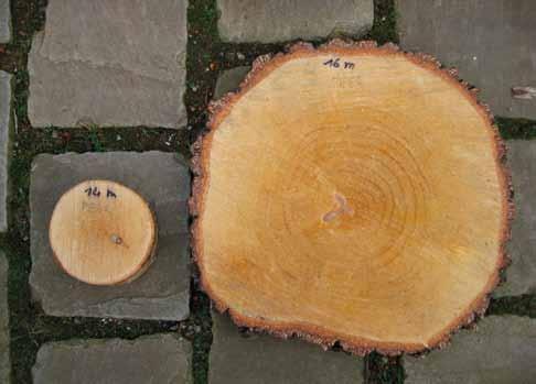 en 16 meter). Ondanks hun zelfde leeftijd (ca. 20 jaar) is er een groot verschil in diameter. Conclusie: benut op tijd die jeugdige groeikracht!