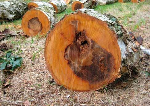 Snel gegroeid hout heeft brede jaarringen. Met het vrijstellen van de kroon mikken we dus op een snelle en constante groei. Constante groei betekent dan dat elk jaar ongeveer even brede jaarringen gevormd worden. Ons doel was fineerhout. Het liefst heb je hiervoor regelmatig ge-