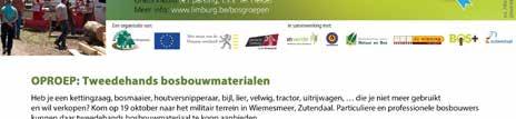 Als afsluiter van de Week van het Bos organiseren de Limburgse Bosgroepen een grote bos- en houtbeurs met diverse infostanden, een aanbod van nieuwe en tweedehands werktuigen en allerhande demo’s van bosbeheerwerken. Een echte aanrader voor elke bosliefhebber! De Oost-Vlaamse bosgroepen organiseren gezamenlijk busvervoer voor een daguitstap naar deze happening.