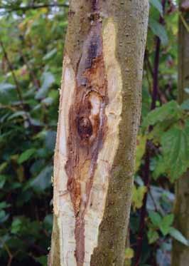 Op die plaatsen sterft het cambium en vervolgens de schors af. Dergelijke vlekken ontwikkelen zich vaak rond de aanhechtingsplaats van een jong twijgje en breiden zich uit langs de schors van de stam of hoofdtak.