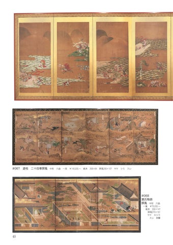 六曲 一隻 ¥75, 000. ~ 紙本 356×147 屏風370×161 ヤケ 大シミ スレ 剥離