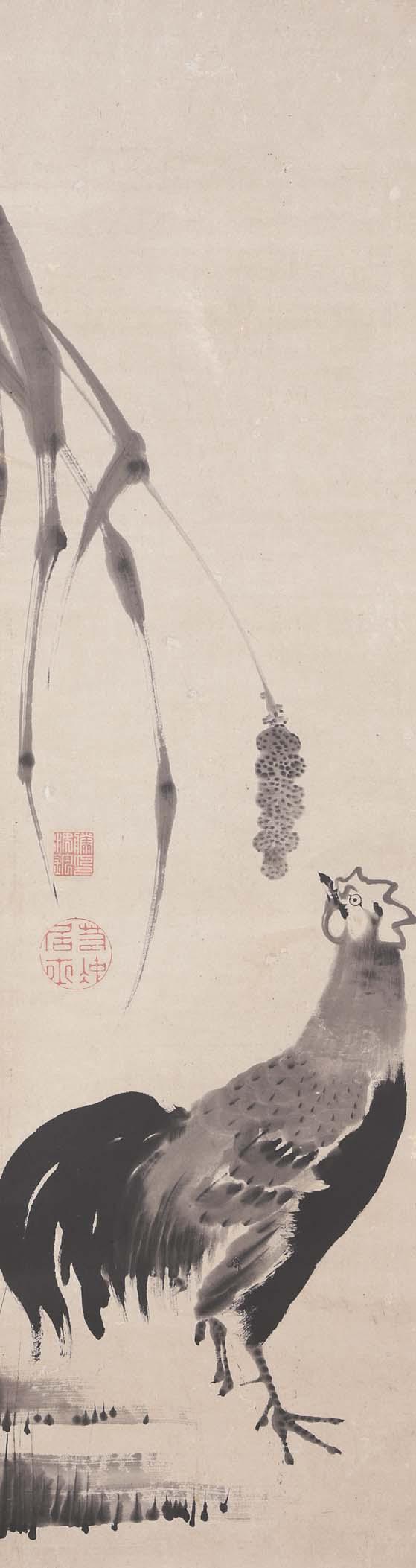 D-006 雪村周継 双鳥画幅 ¥180,000~ 付合箱(杉)