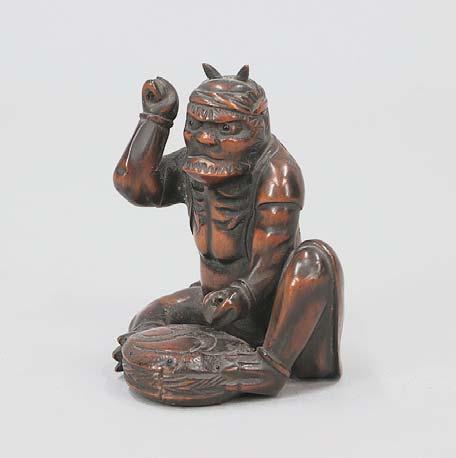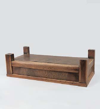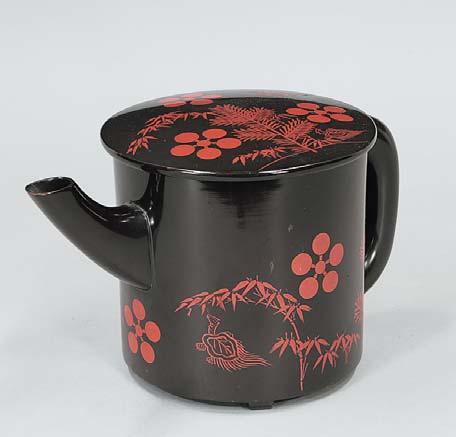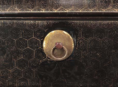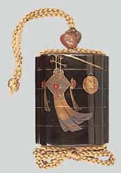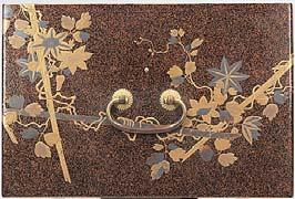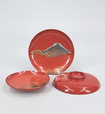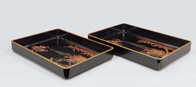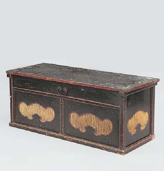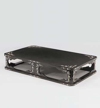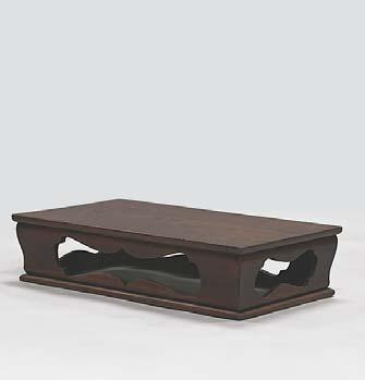 #003 紫檀藤丸文蒔絵短冊箱 ¥300000~ 付時代識箱(桐 貼札) 所載コピー 9×39×65 『近衛公爵御蔵器第二回入札目録』 (東京美術倶楽部・大正七年)所載 「東大寺箭匣形御短冊函」箱識 #004 春駒遊御所人形 ¥290000~ 付木箱(桐 貼札) 像高39 #005 黒漆塗大平卓 ¥115000~ 94×46×22 剥離 小ソゲ