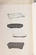 #019 薄青磁三脚香炉 ¥80000~ 付時代識箱(桐 貼札) 牙蓋 7×7×6 磁貫 #020 紫南京水盤 ¥500000~ 付二重箱(内時代貼札桐 外溜塗) 所載本 図録コピー 39×22×4