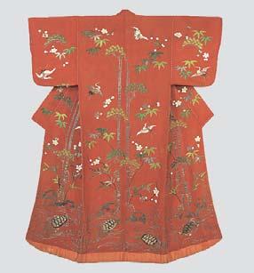 □打掛の表記について 小袖、あるいは、振袖と、打掛の形態的変化は殆どない。ここでは、織物と、 婚礼衣裳として着用されたものを打掛と表記した。