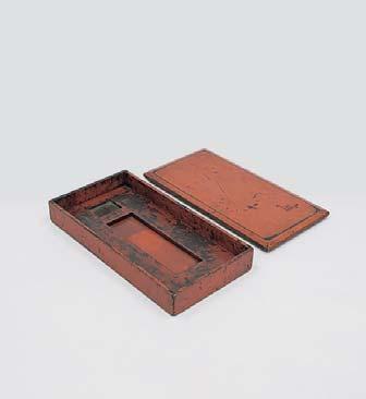 #053 唐物朱塗長卓 ¥100000~ 付時代箱(杉) 65×21×10 隅キレ 剥離 蓋裏三井家長方印