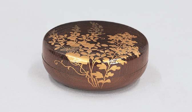 #013 波蒔絵錫縁香合 ¥70,000~ 付時代箱(桐) 7×9×35 小カケ 小アタリ 底小剥離