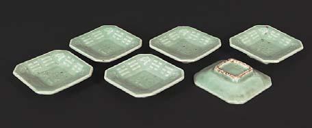 #028 常滑鯛鈕四方香合 ¥30,000~ 付時代識箱(桐) 4×4×4 窯キレ #029 陶華園翠峯 萬古焼青磁東福寺模香炉 ¥30,000~ 付共箱(桐) 12×12×11 磁貫
