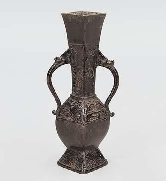 #052 銅鶴首花入 ¥30000~ 付木箱(杉 貼札) 65×65×275