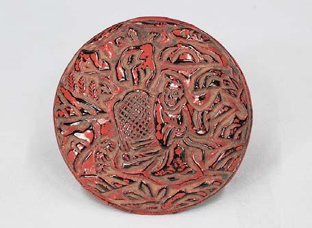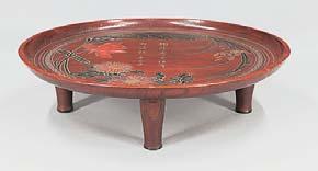 #025 堆朱牡丹尾長鳥文軸盆 ¥100000~ 15×37×35 角塗補修