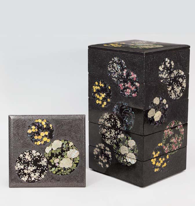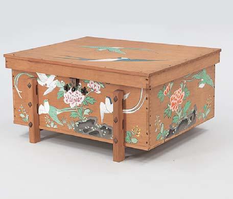 #009 御筆色紙短冊帖 ¥150,000~ 付識箱(桐) 帖56×38 御花色紙二 御花短冊 色紙四 短冊 懐紙 #010 花色紙 ¥100,000~ 付時代識箱(桐) 色紙15×165ほか 色紙3 短冊4 「南山常什 日舜」箱識 大石寺十九世貫主(1610 1669) #011 西田正美 彩絵唐櫃 ¥70,000~ 付共箱(杉) 35×28×175 正倉院御物写