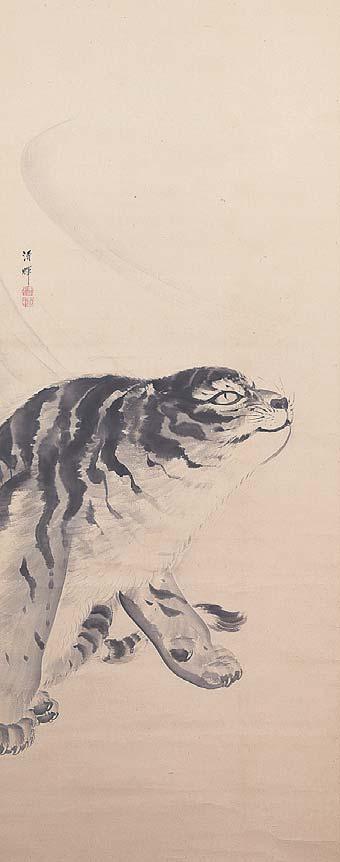 KR-010 雨中虎画幅 ¥50,000~ 紙本 雑木軸端 515×100 表具61×165 ヤケ シミ オレ