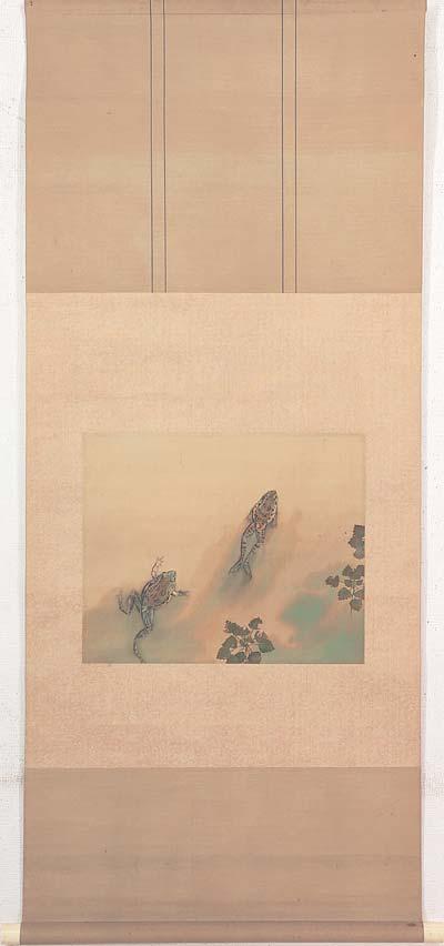 KR-001 申師任堂 藻魚画幅 ¥100,000~ 付木箱(桐) 紙本 牙軸端 36×54 表具54×115 薄シミ スレ 穴 「思妊堂」款記 申師任堂(1504~1551)は李氏朝鮮期の女流書画人。江陵出身。号に師 妊堂、思妊堂など。詩文絵画を能くし、また儒教孝心高く良妻賢母の鑑と して尊崇される。