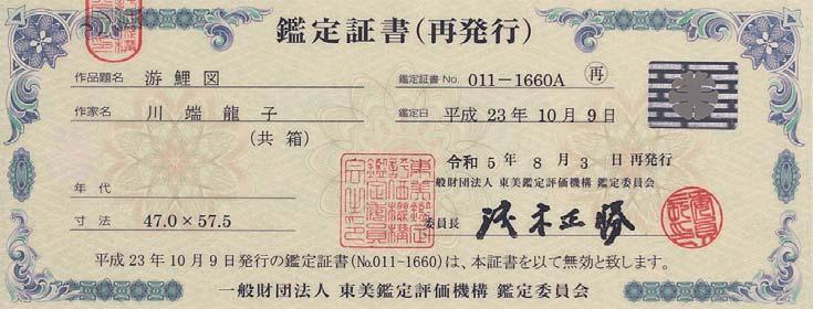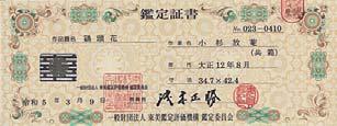 カタログ掲載の全作品に経年損傷、実作品の色目等に多少の差異があり、下見会での実見 確認を原則としております。下見会へのご来場が困難な場合には、コンディションレポートを 受け付けます。お申し込み順での対応となりますので、お早めにお問い合わせください。真贋 については未詳。