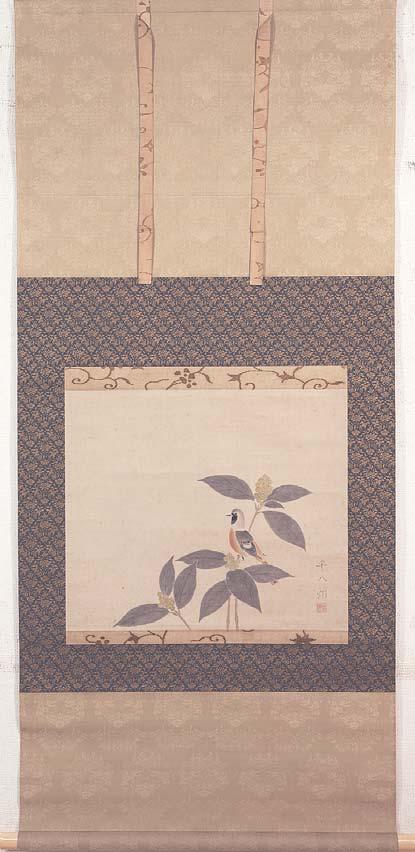 付二重箱(内桐 外黒塗) 西山完瑛折紙 太巻 絹本 牙軸端 34×59 表具46×144 ヤケ シミ 土佐光起(元和三・1617~元禄四・1691)は光則の子。土佐派中興の 祖。堺の人。承応三年宮廷の絵所預となり、内裏造営に参加。延宝九年剃 髪、法名常昭、法橋に叙せられた。鶉図をよくした。