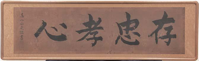 KR-009 宋秉畯 三行書幅 ¥60,000~ 付時代識箱(杉) 絖本 骨軸端 43×139 表具56×216 シミ 表具シミ、ウキ 「癸亥(1923)仲夏」書中 宋秉畯(1857~1925)は韓国の政治家。親日団体 を組織し、日韓併合に協力。