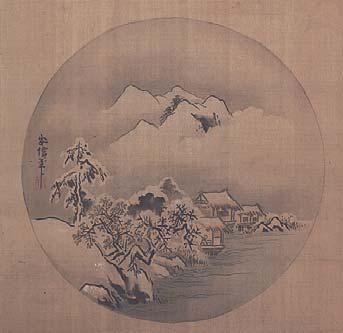 柿本人麻呂画幅 ¥50000~ 付時代識箱(桐 貼札) 所載目録 絹本 牙軸端 42×105 表具55×190 ヤケ シミ オレ 虫穴 表具オレ、虫穴 『井上大丸所蔵品入札』(昭和17年 京都美術会館)所載 岸連山(享和三・1803~安政六・ 1859)。本姓は青木。名は徳。字は士 道。幼名は徳次郎。